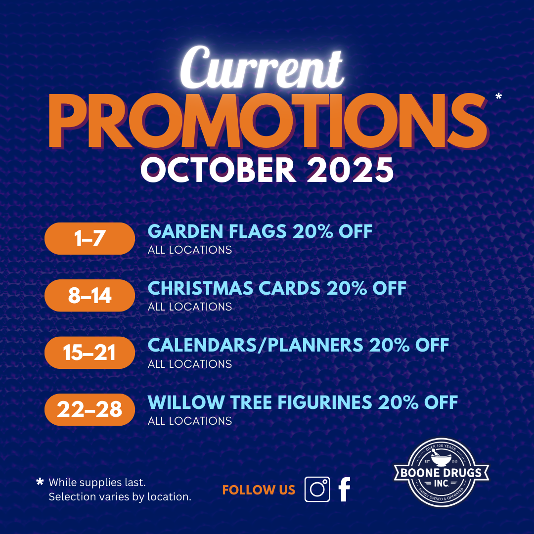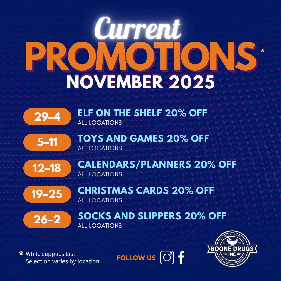 Boone Drug seeks to honor God by providing for our community the pharmaceutical, medical, nursing, and health needs through personal, caring, and professional service to our patients and their caregivers.
