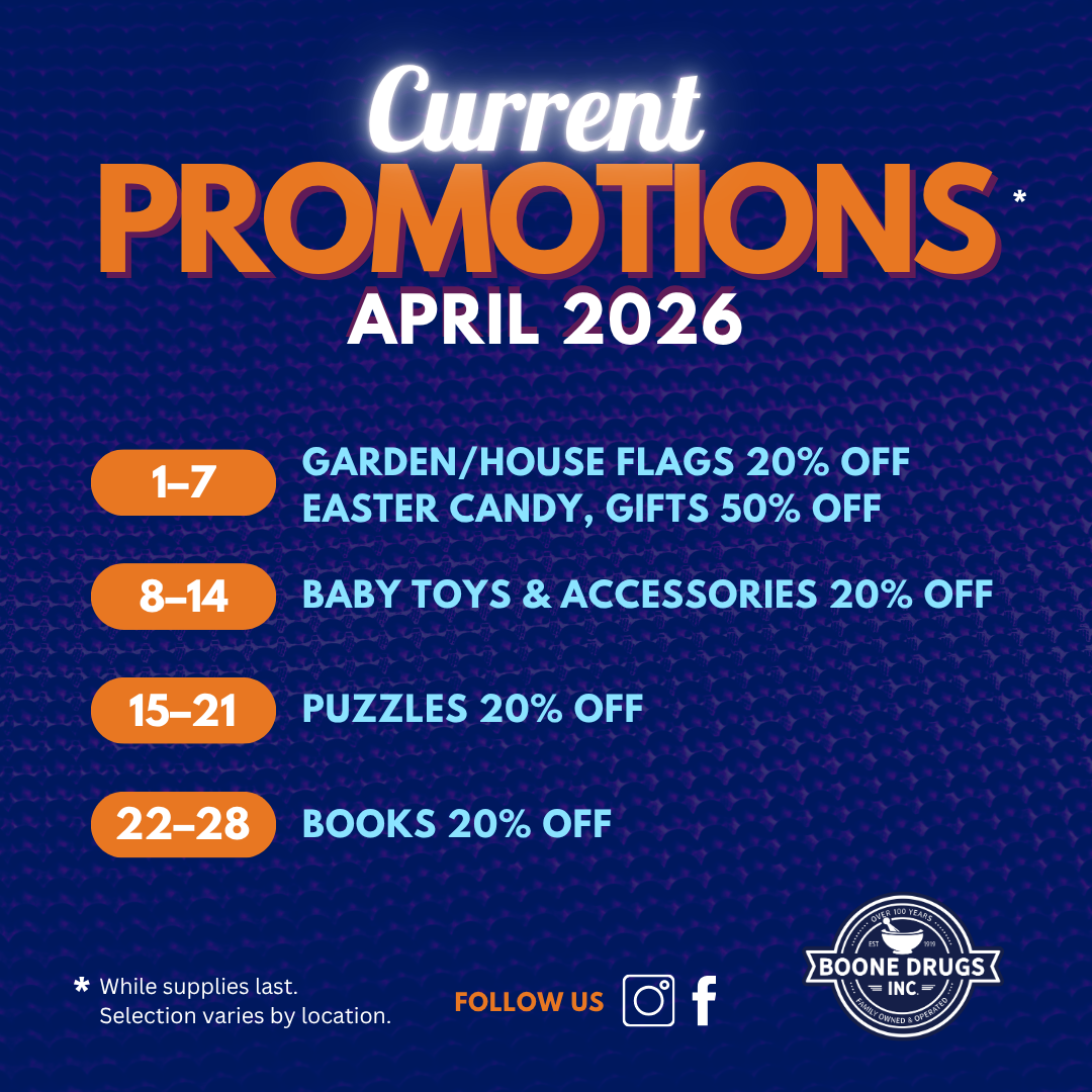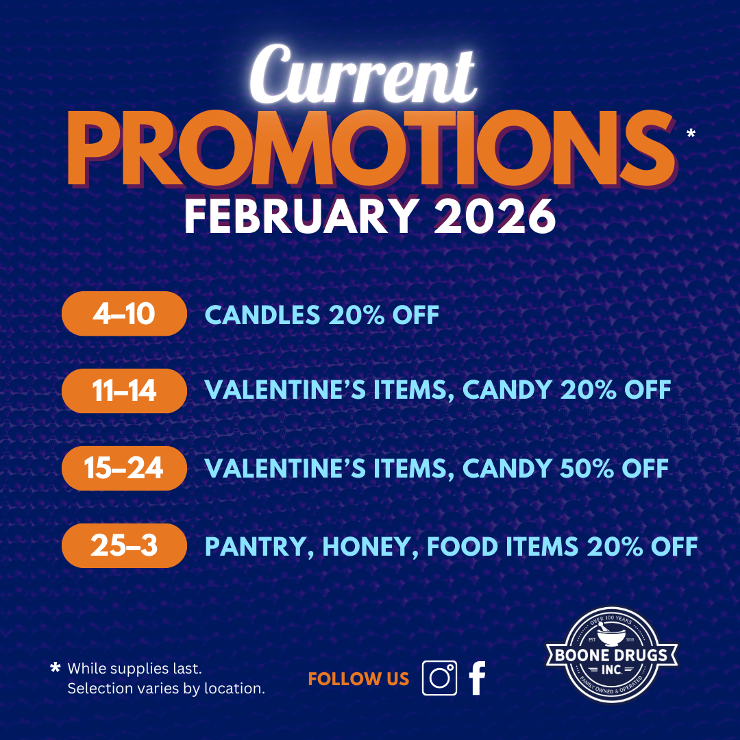Boone Drug seeks to honor God by providing for our community the pharmaceutical, medical, nursing, and health needs through personal, caring, and professional service to our patients and their caregivers.